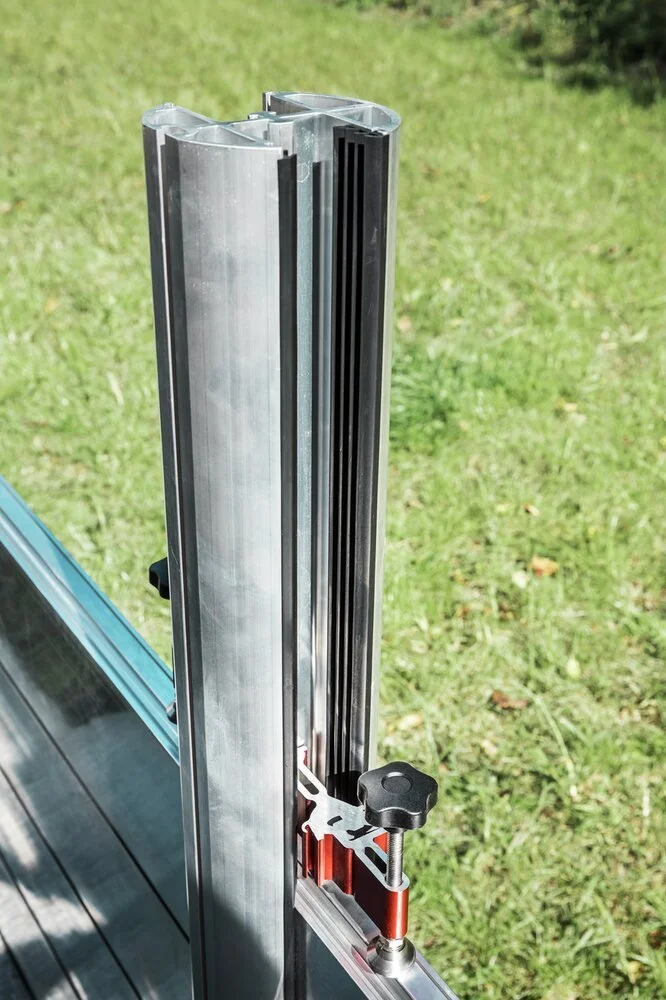 Die Befestigungsprofile und Aufnahmepunkte werden objektspezifisch geplant und an die örtlichen Gegebenheiten angepasst. Das PREFA System bietet Mittelsäulen als Aufnahmeprofile, mit denen sich Schutzwände nahezu beliebig lang und auch in kurvigen Verläufen ausführen lassen. Diese sind in verschiedenen Winkelausführungen mit Abstufungen von 15 Grad erhältlich. Die Säulenprofile sind abnehmbar, sodass die Schutzlinie im Normalzustand für Personen kaum wahrnehmbar ist.